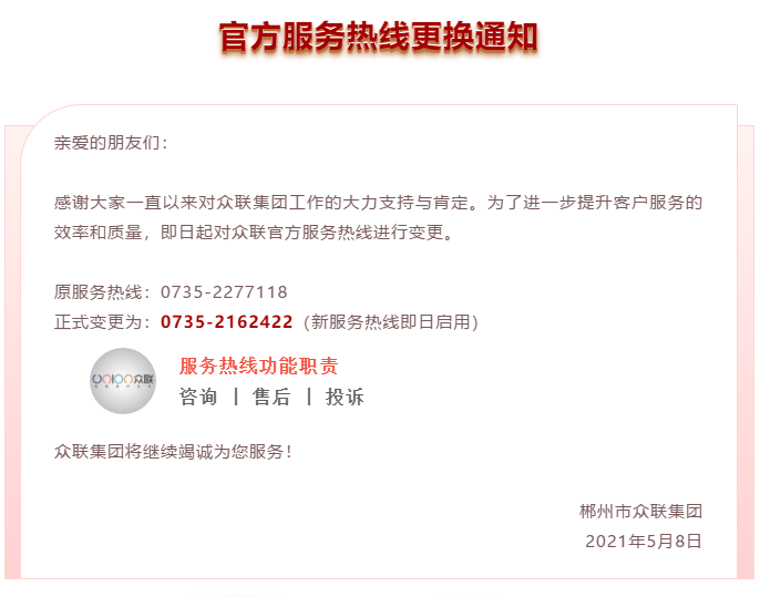 众联头条 | 官方服务热线变更,众联将继续竭诚为您提供更好的服务!